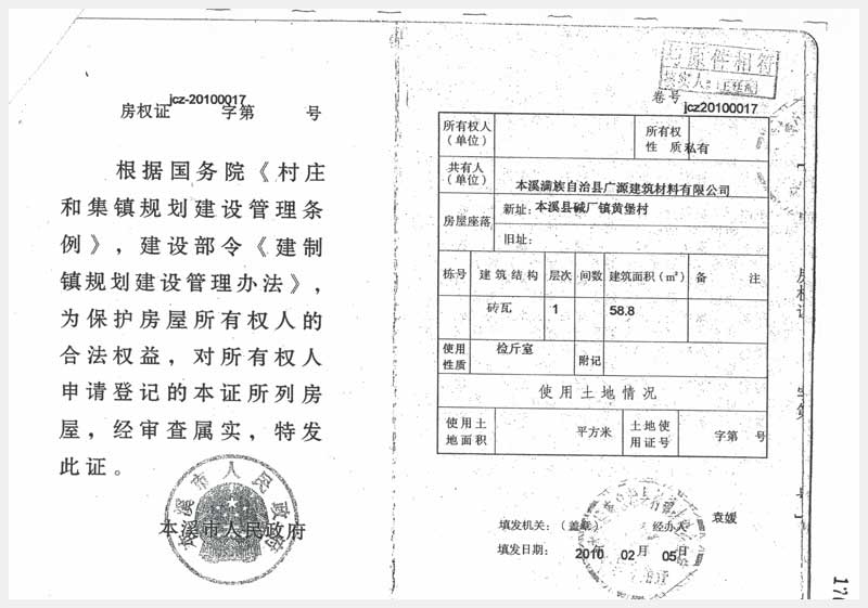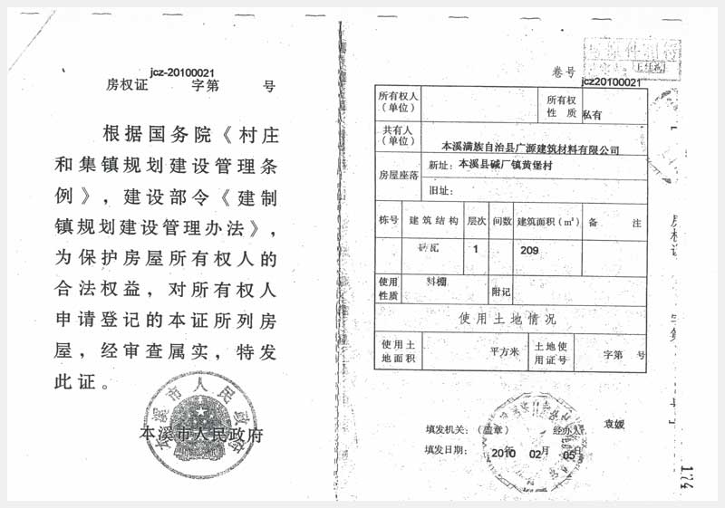 名稱:本溪縣堿廠鎮黃堡村房產7處、土地2處及設備25項 面積:房產:3241.16㎡、土地:9290㎡ 瀏覽次數:1893