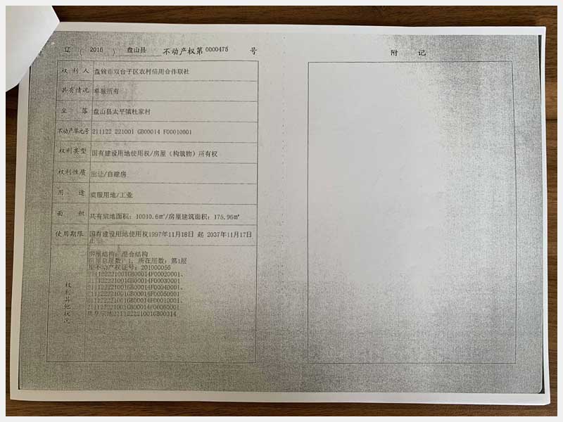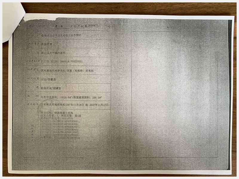 2號 盤錦盤山縣太平鎮杜家村房產及土地使用權(凌天冷凍有限公司)