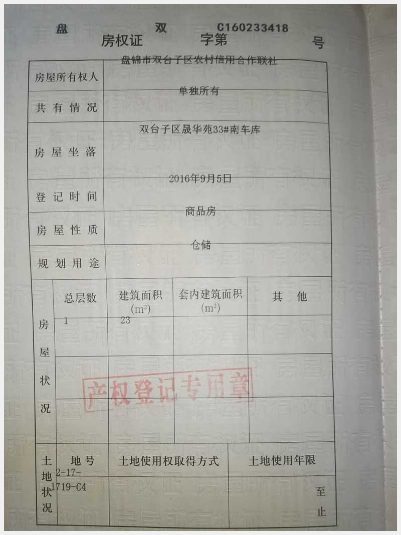 11號 盤錦雙臺子區紅旗大街北側晟華苑11個倉儲用房(柳軍)