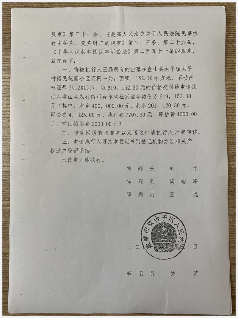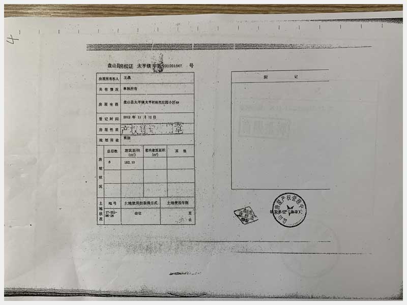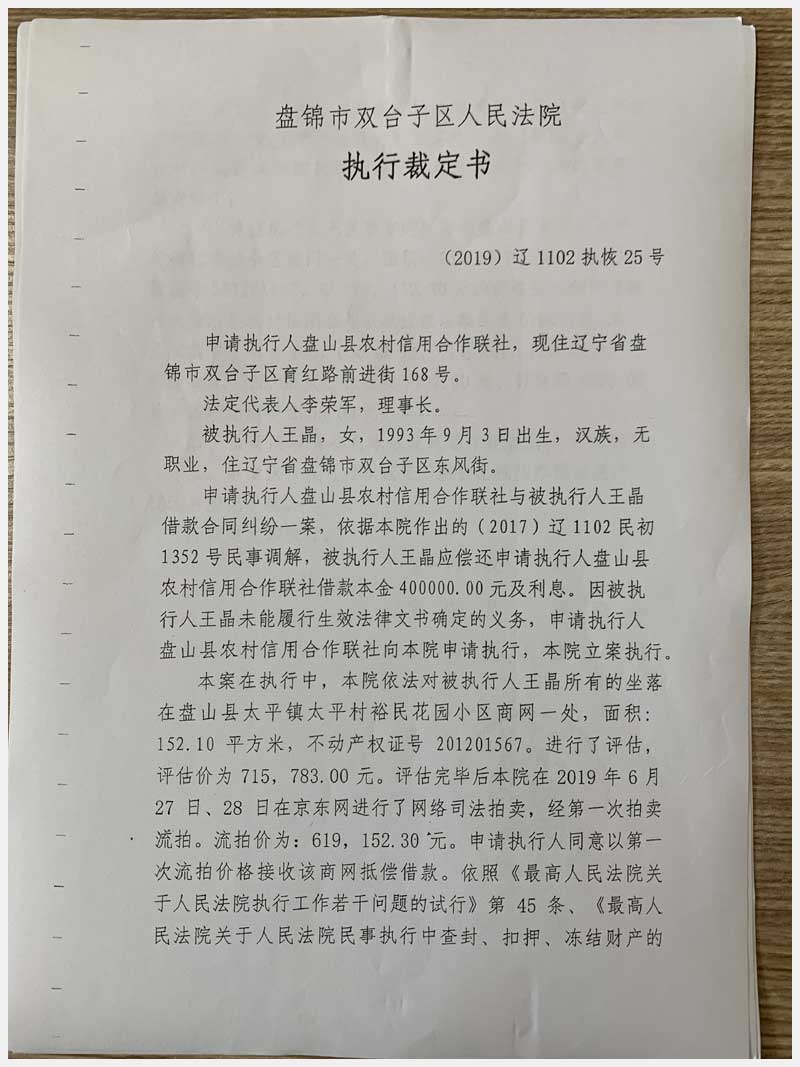 地址:盤錦盤山縣太平鎮太平村裕民花園小區4#(王晶) 標的號:29