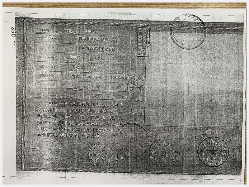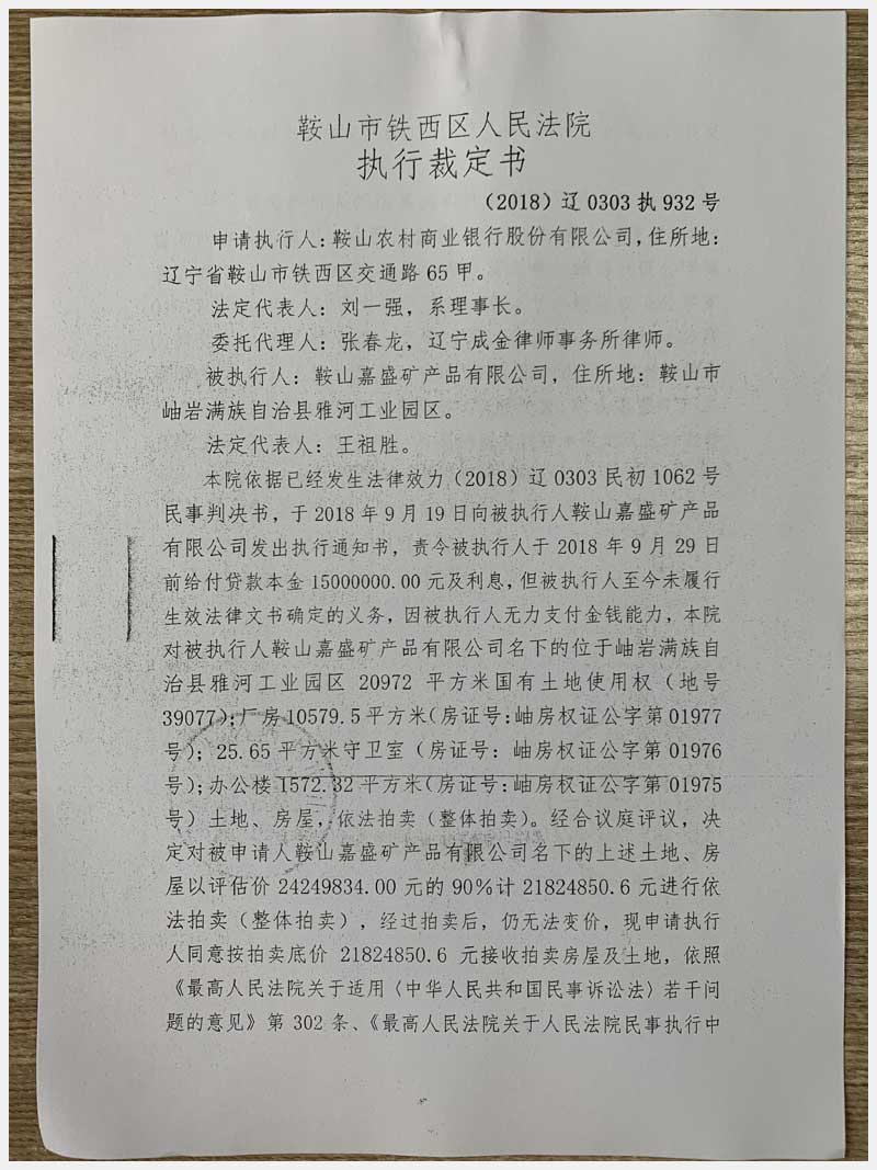 地址:鞍山市岫巖雅河工業園區 標的號:53