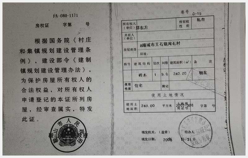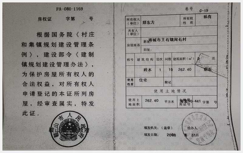 名稱:海城市王石鎮聞石村房產 面積:845.57㎡ 瀏覽次數:1533
