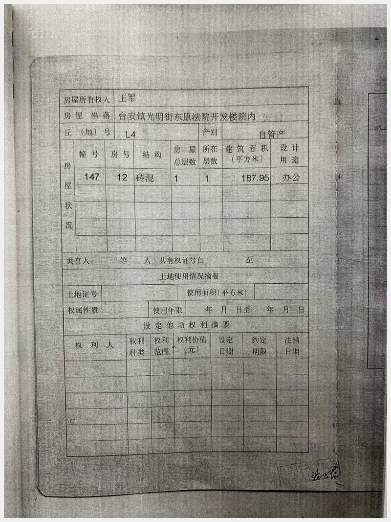 地址:臺安鎮光明街東法院改建樓 標的號:78-2