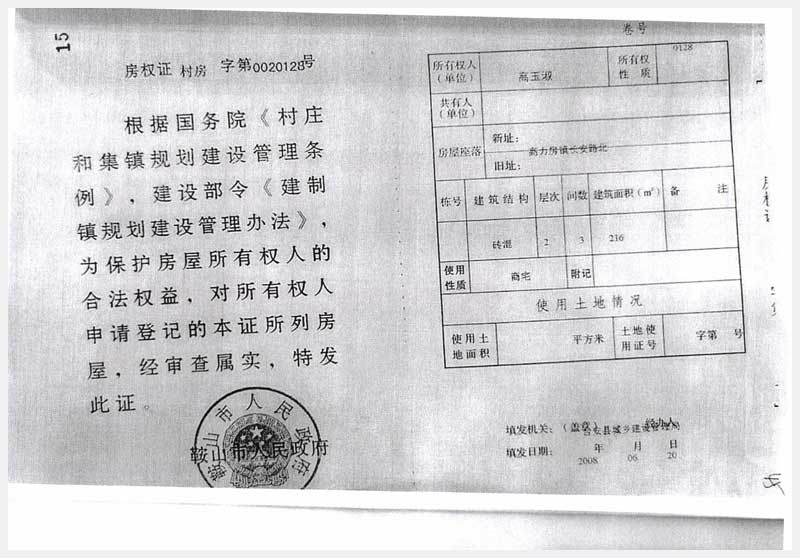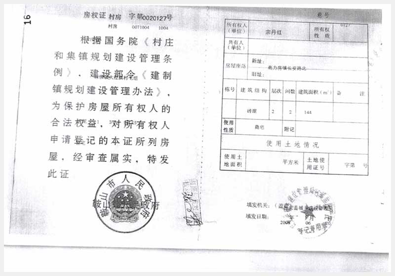 106號 臺安縣高力房鎮(zhèn)長安路北房產(chǎn)